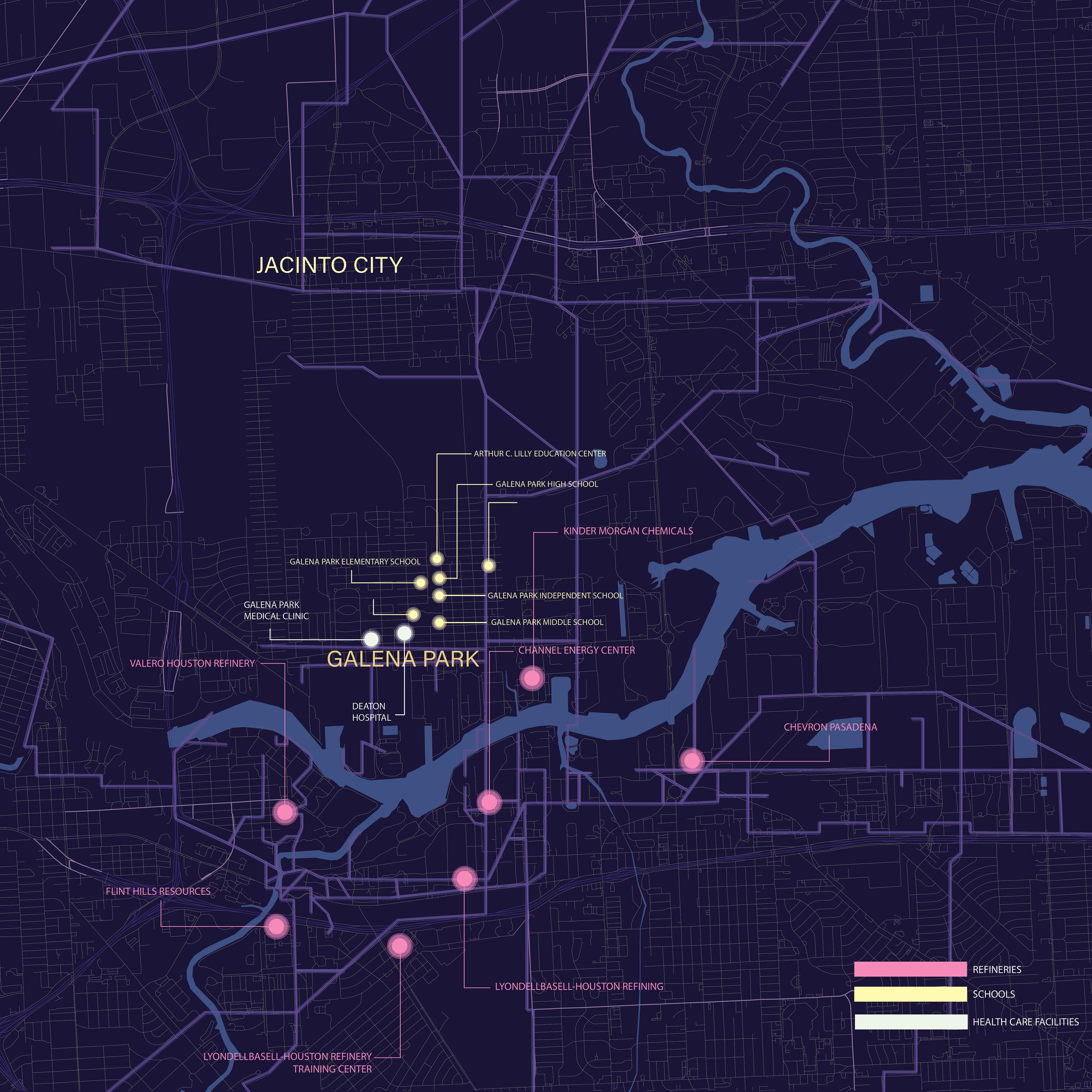 The project is centered around the idea of the particulate imaginary where students were asked to conduct an investigation of a certain particulate of interest. The idea of the particulate imaginary is a theoretical investigation of the struggle to understand matter as something that prompts emotional, intellectual, and political response. The Galena Park Wellness Center project manifested through the extensive research of the particulate, Benzene, a Class A carcinogen that is commonly found in the air of Galena Park, Texas. After analyzing its effects on the environment and people of Galena Park, the proposal for this project was to provide a space for healing, restoring, and repairing the health of Galena Park residents who are affected by petrochemical pollution; a space to help people improve their overall wellness.